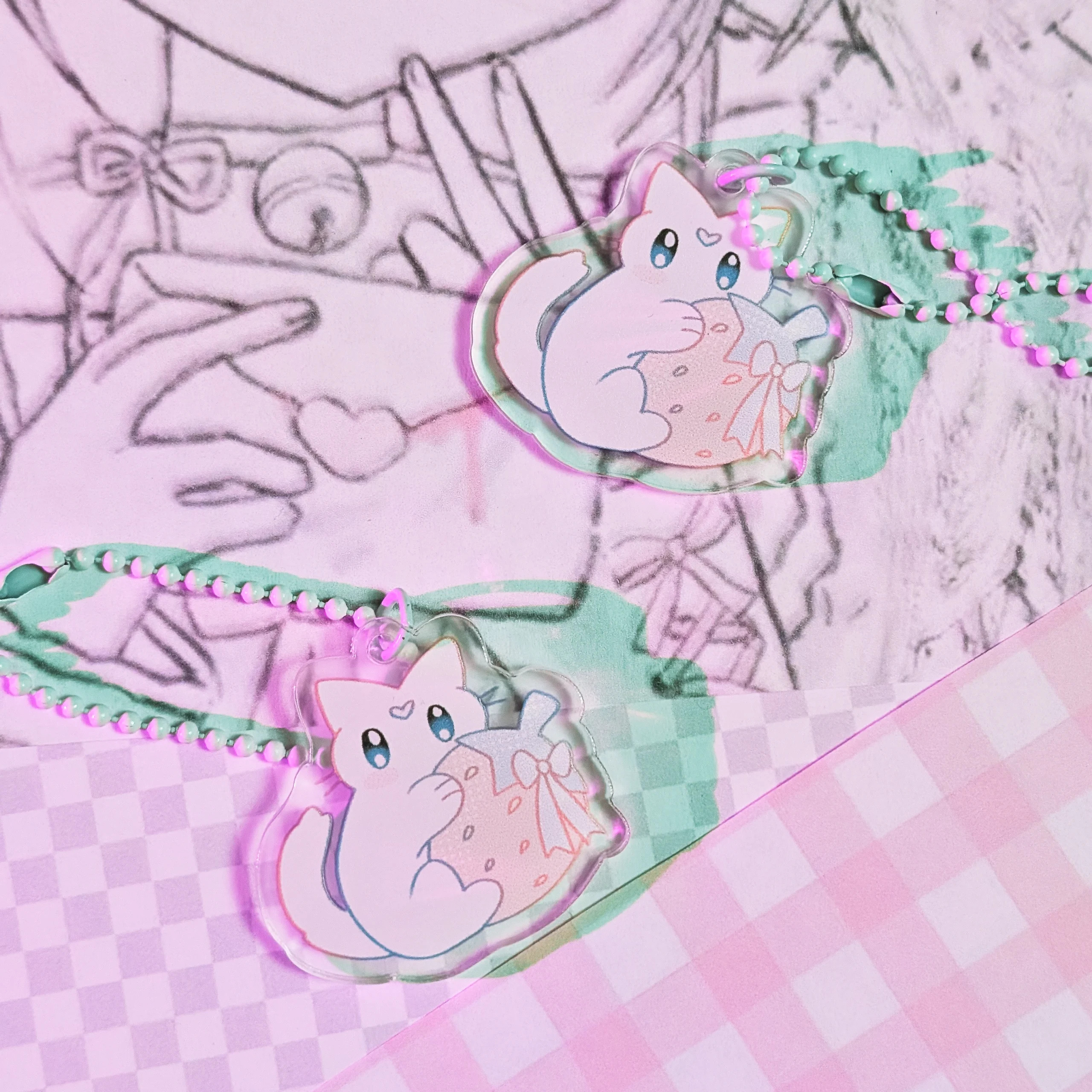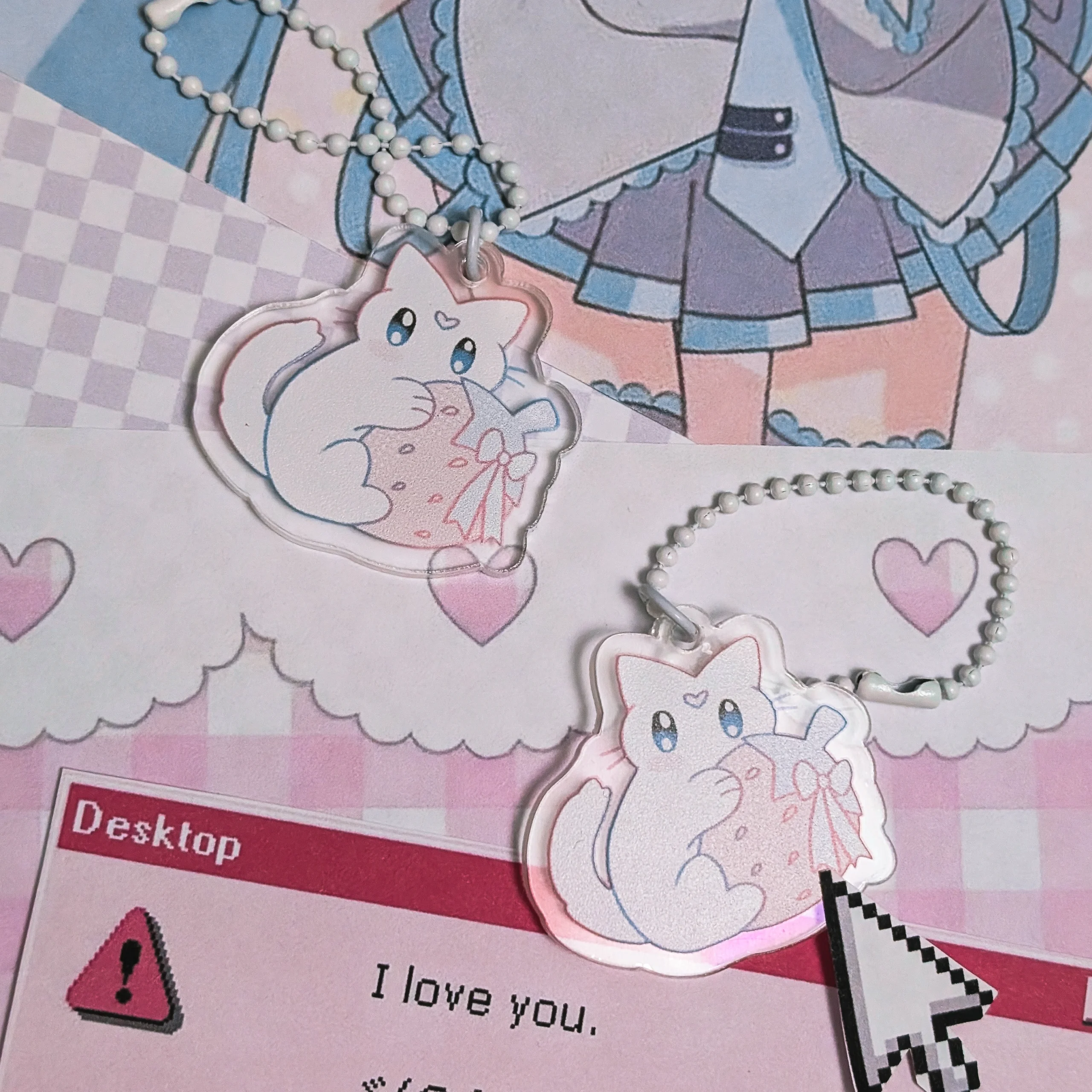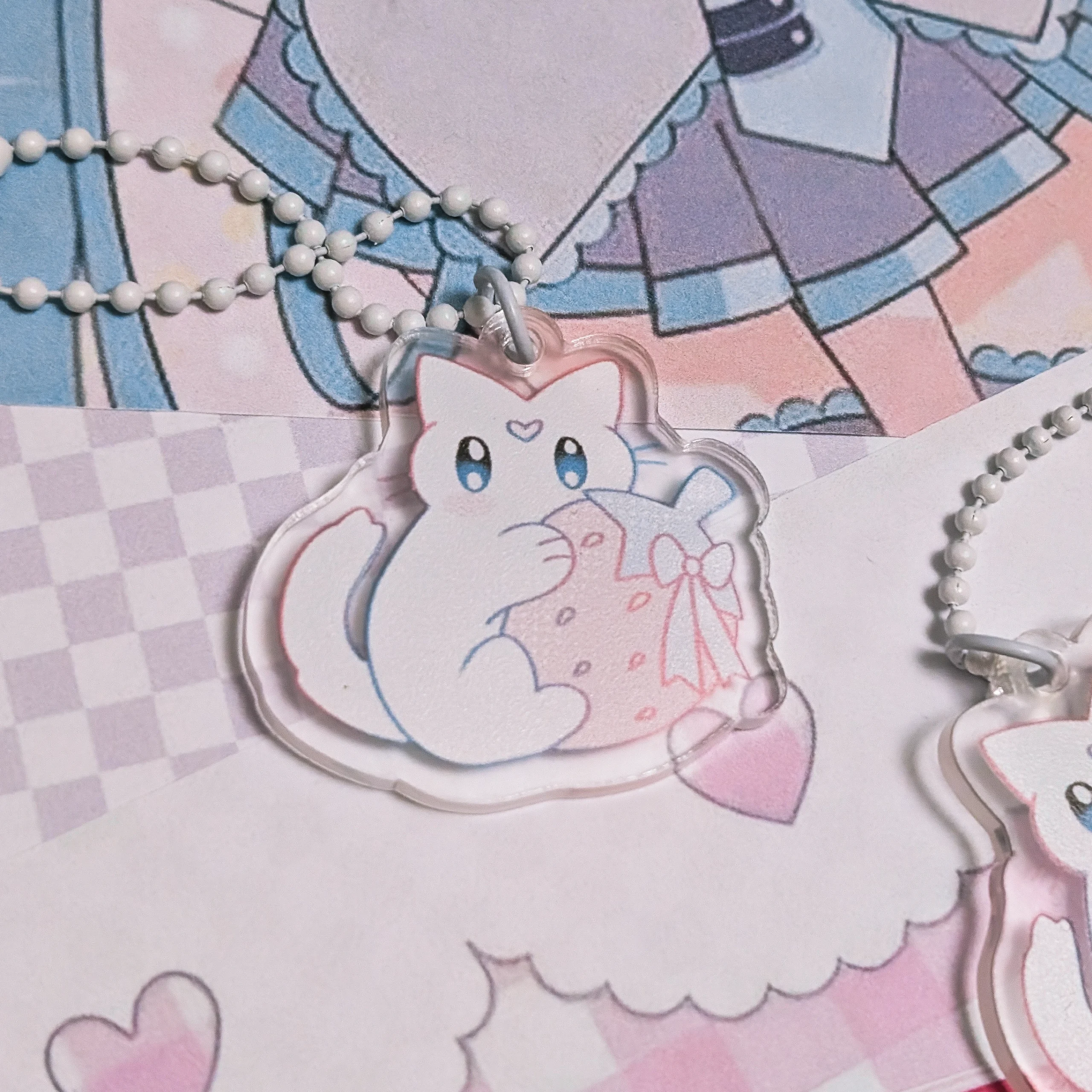 Брелок котика с клубничкой из прозрачного акрила Размер 4 см