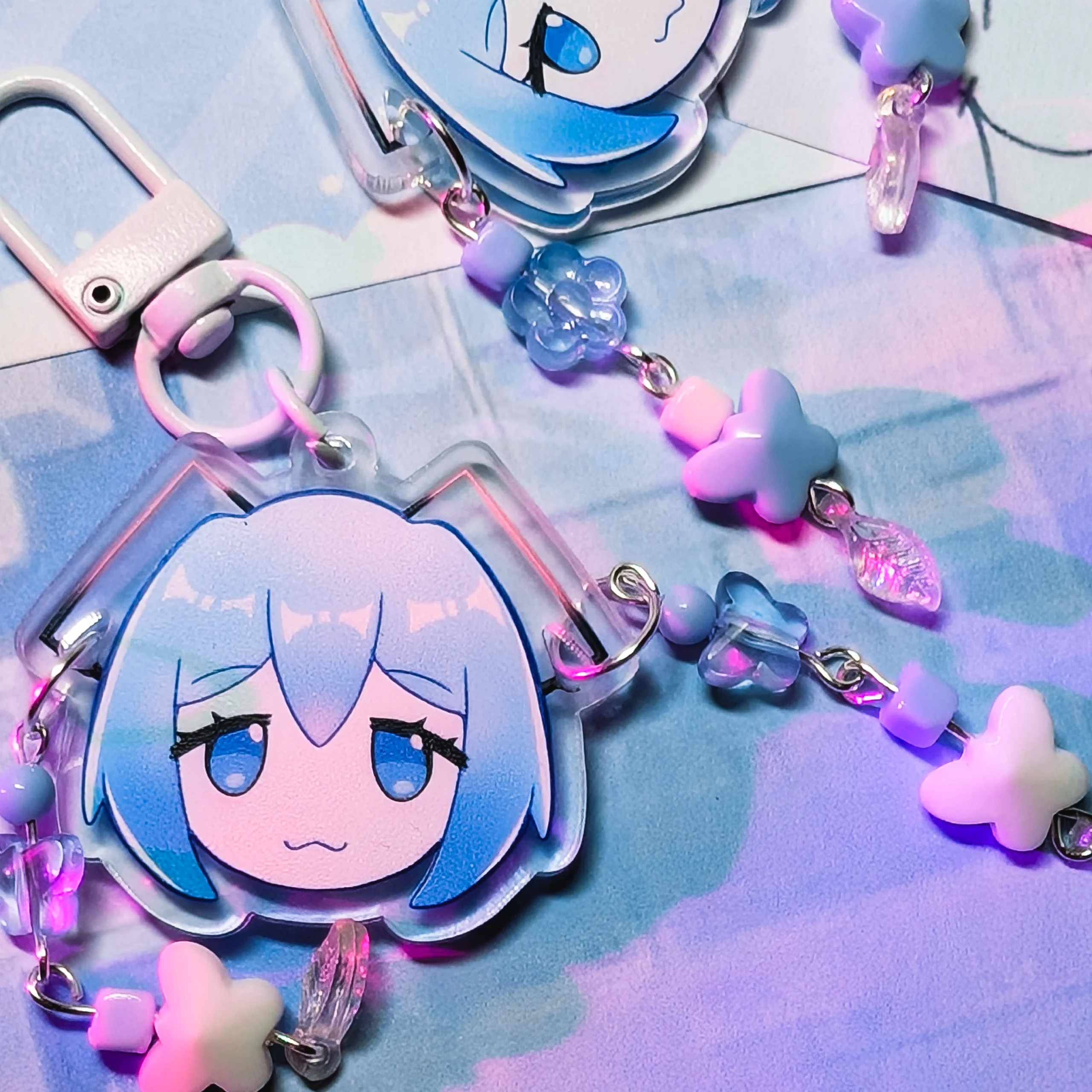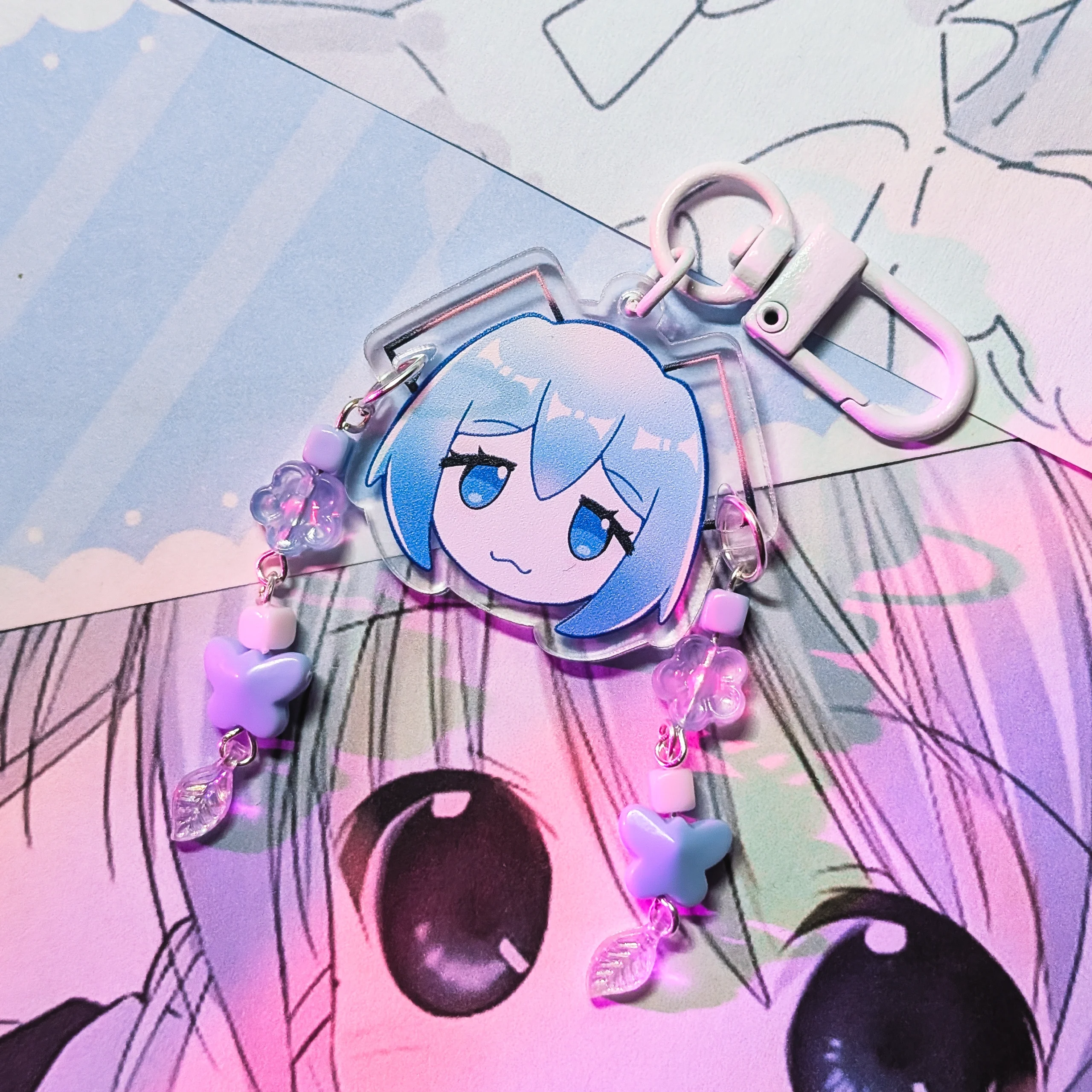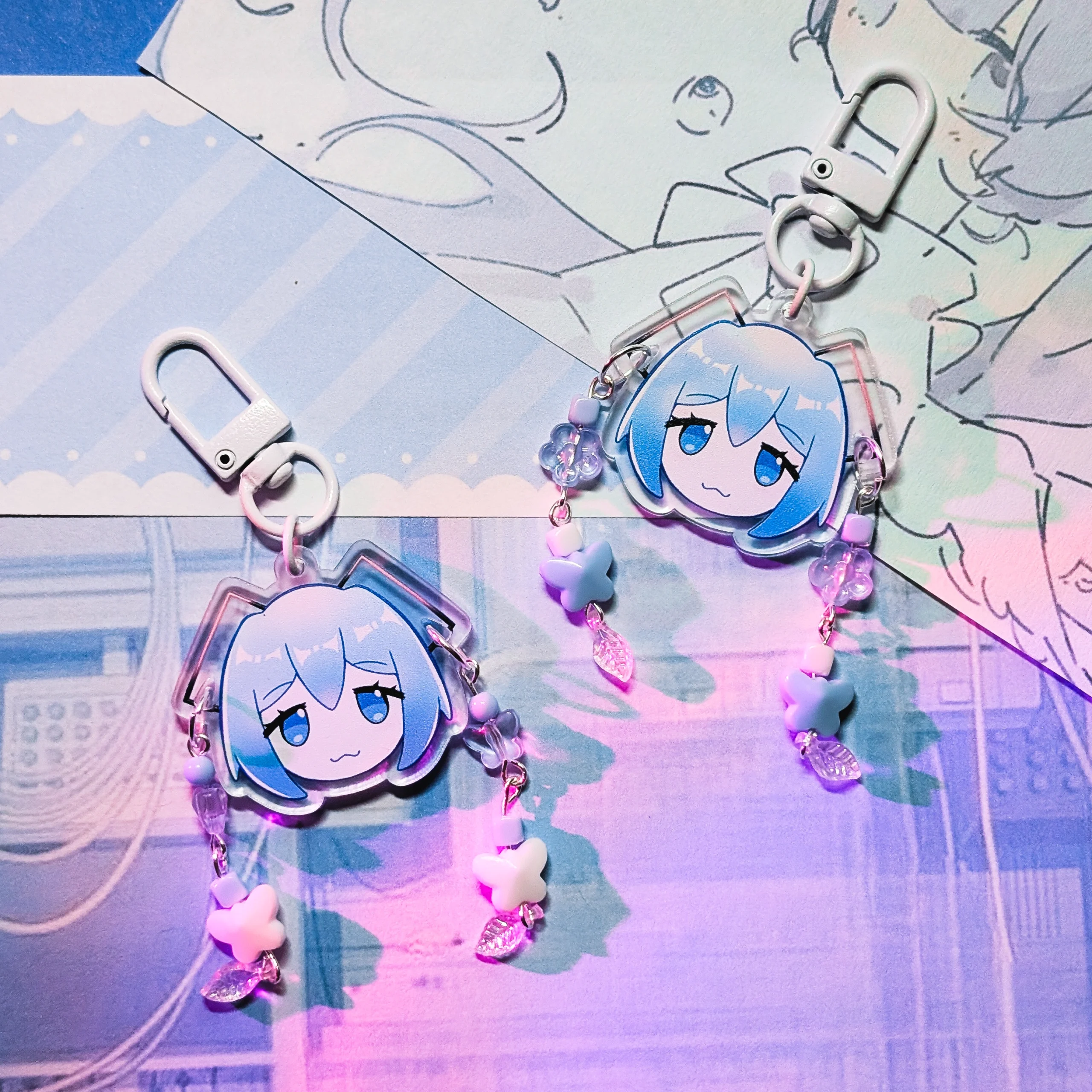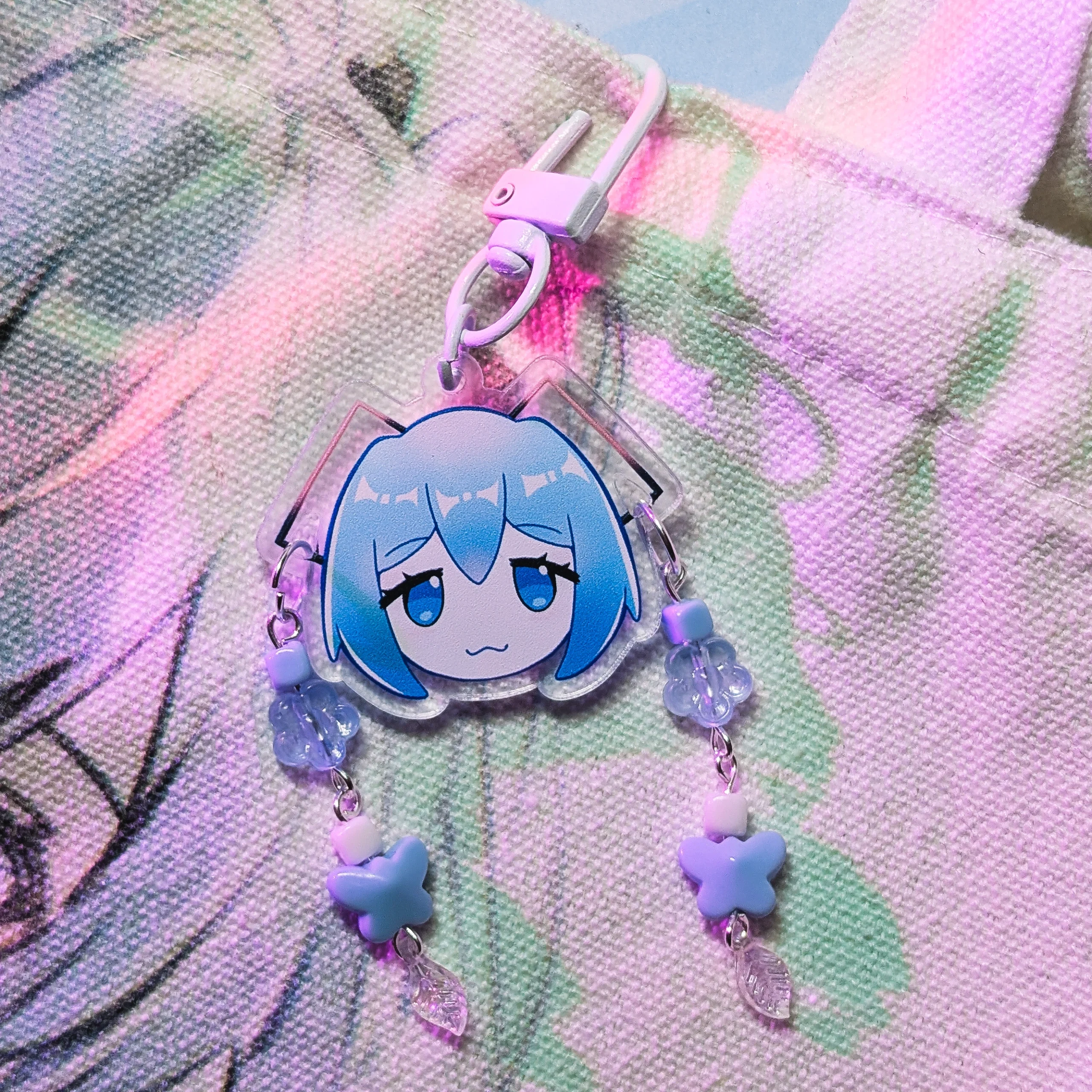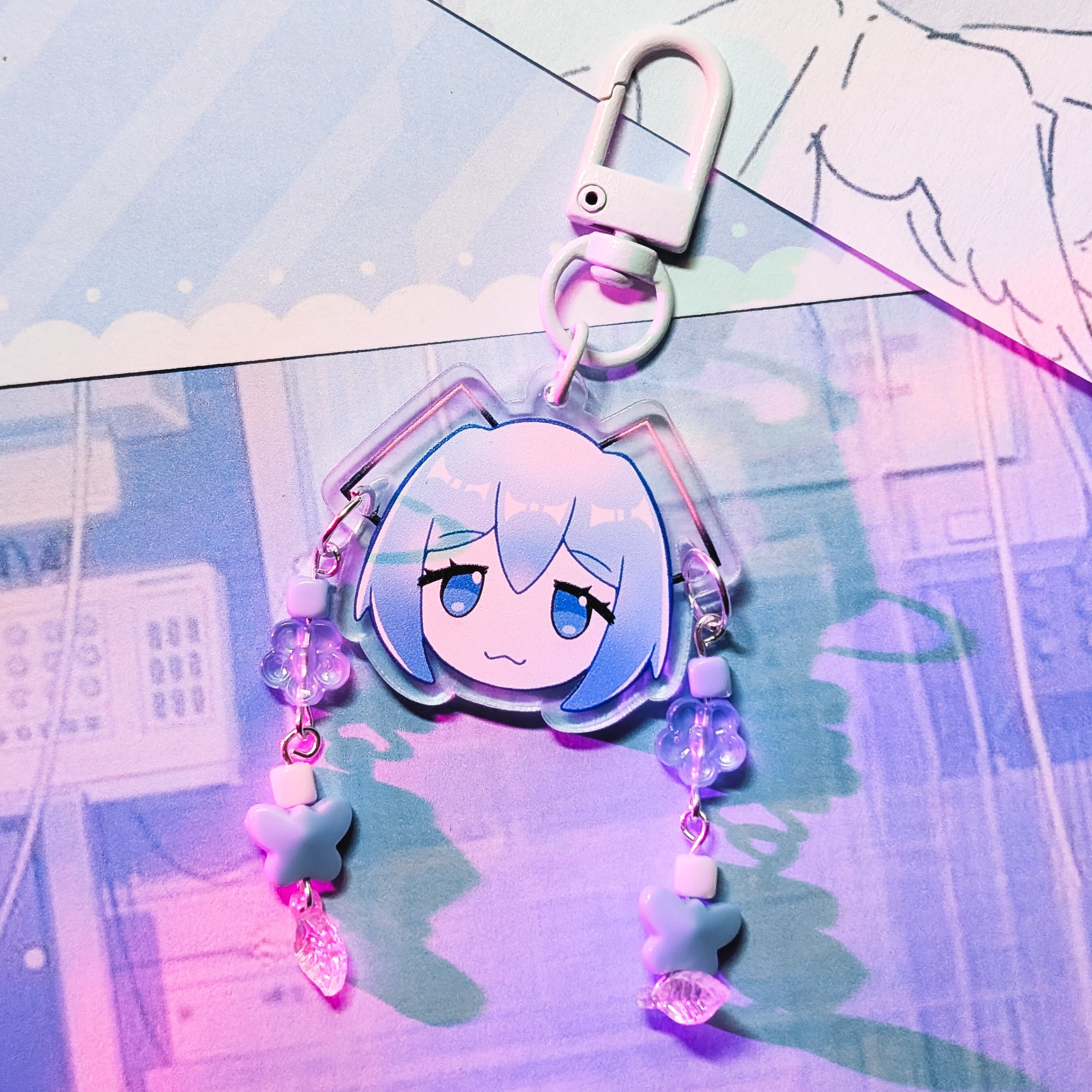 Хэндмейд брелочек с мику и ее хвостиками в виде бусин, 4 см