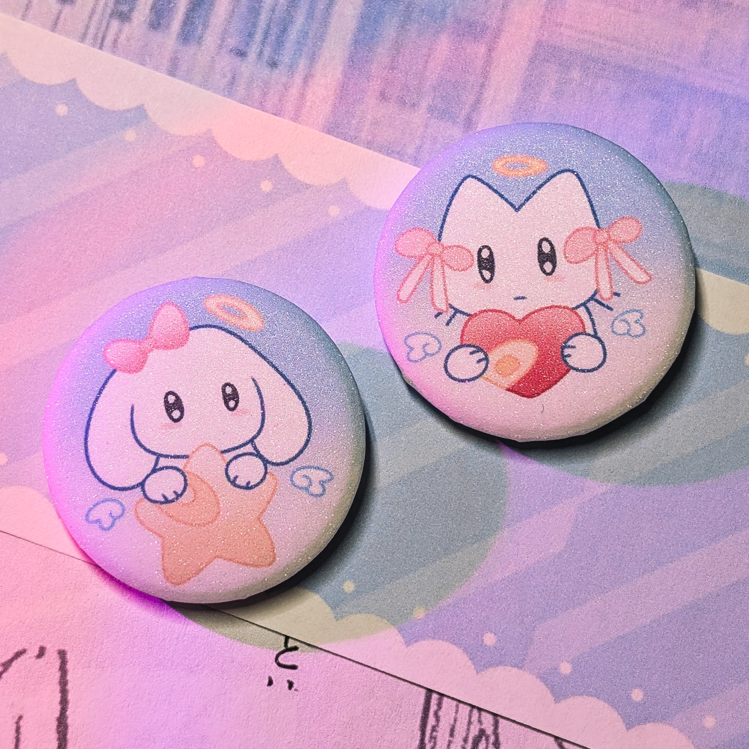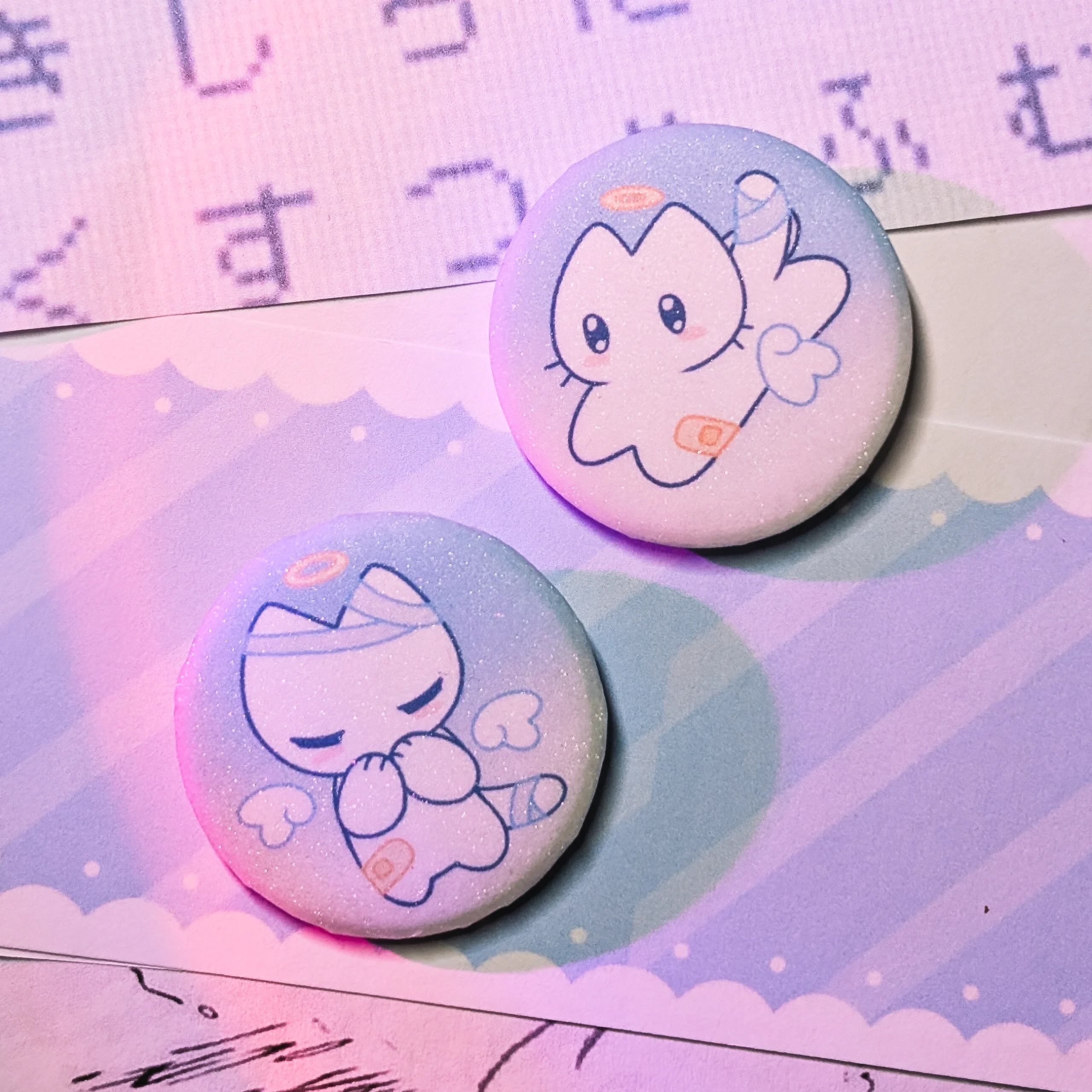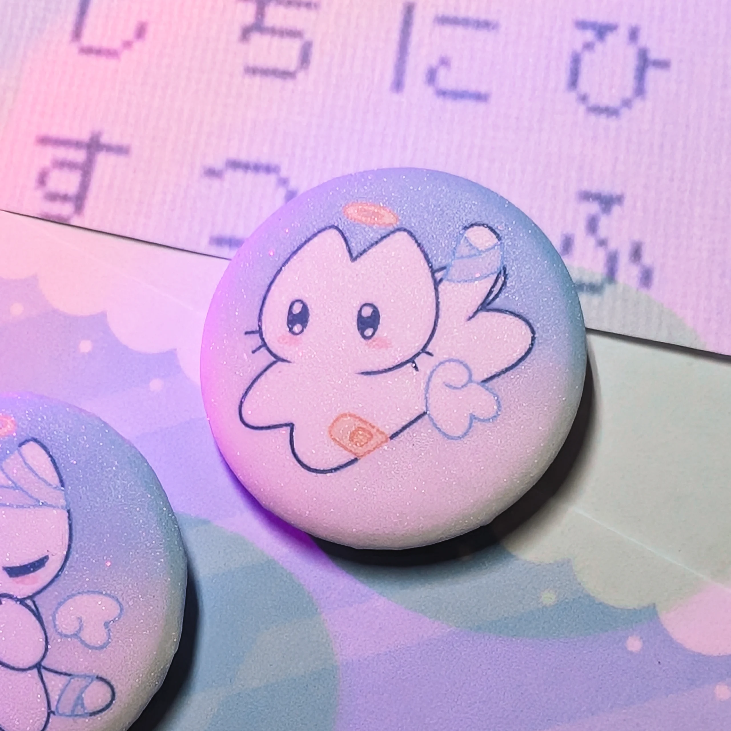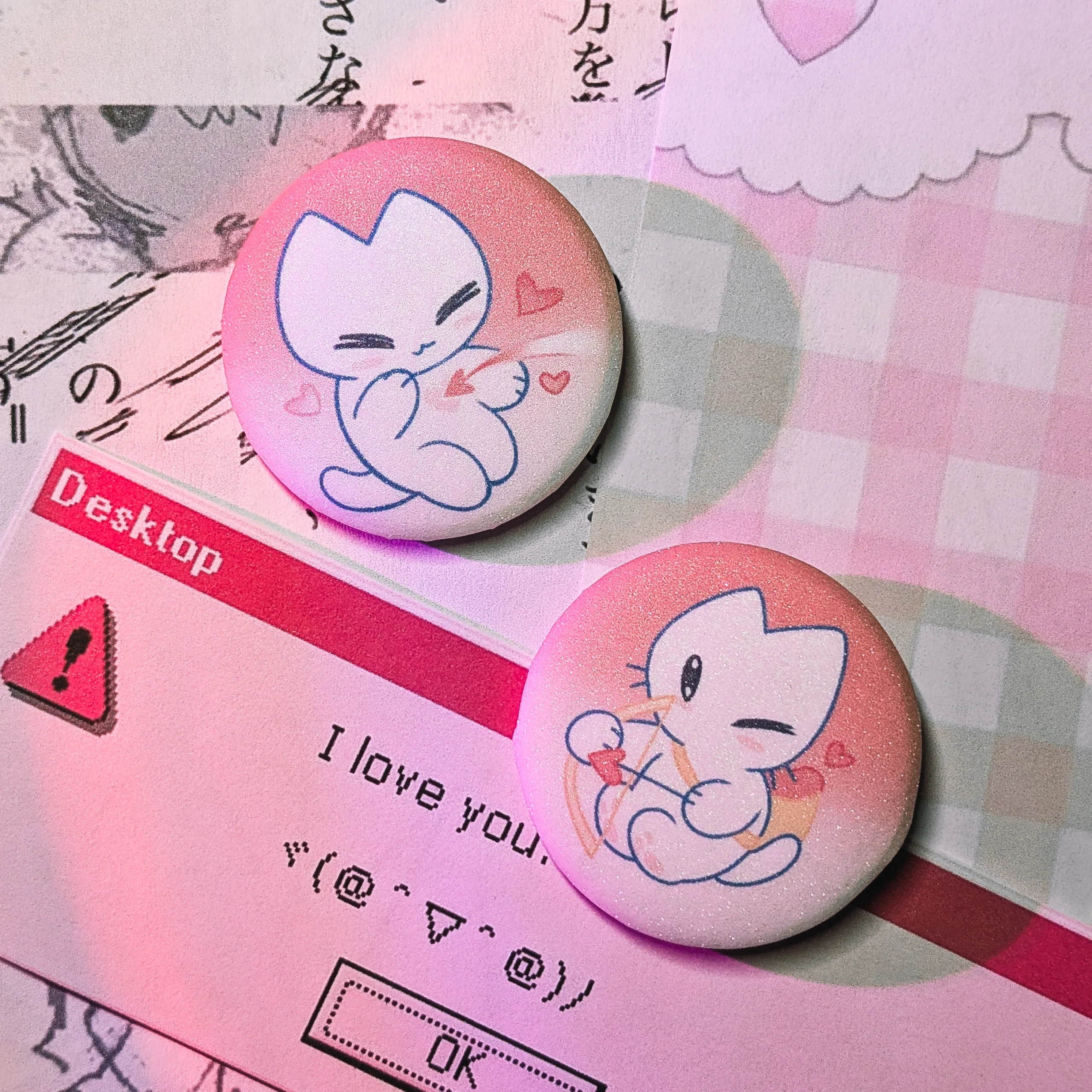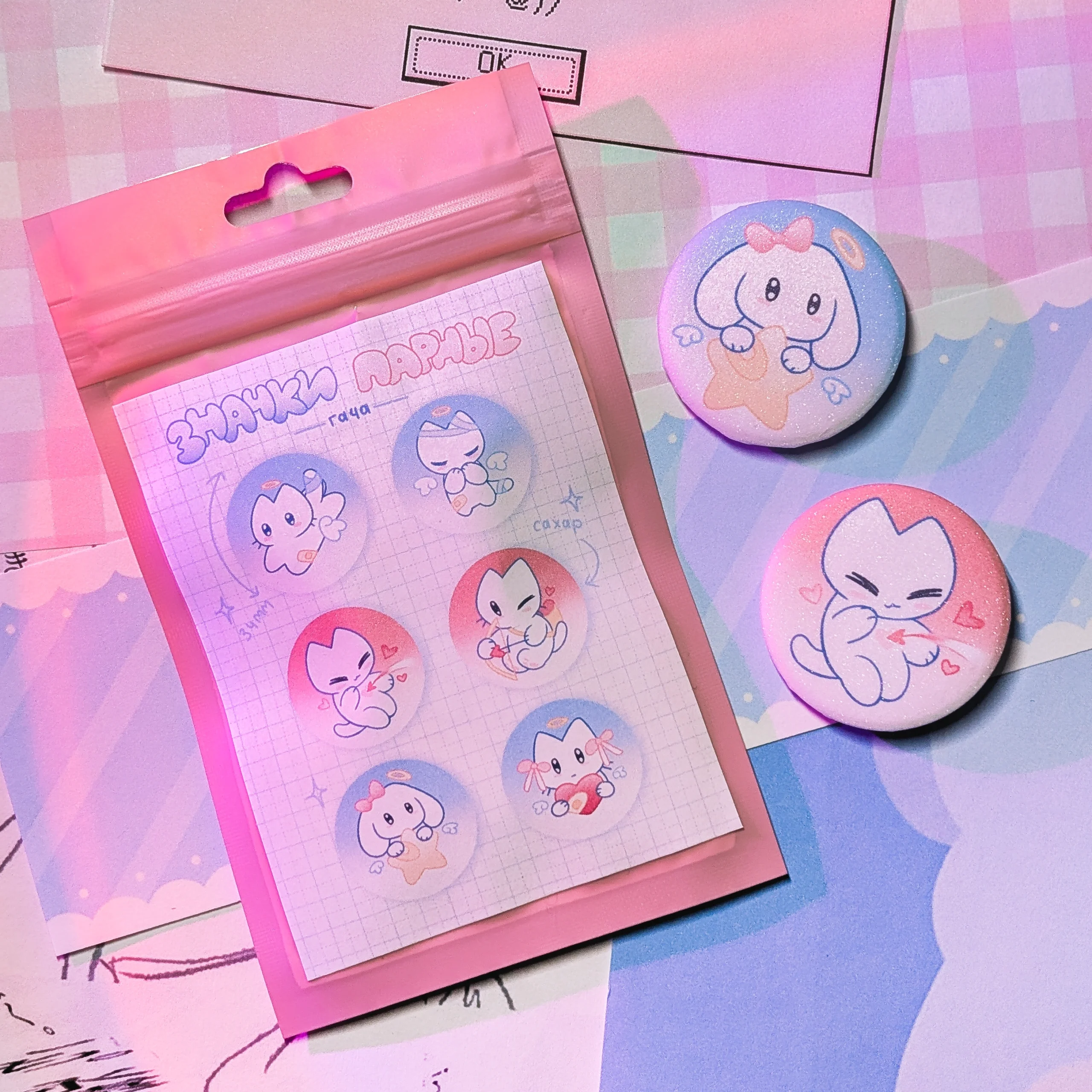 Парные значки с котиками гача, голография сахар, 34 мм.