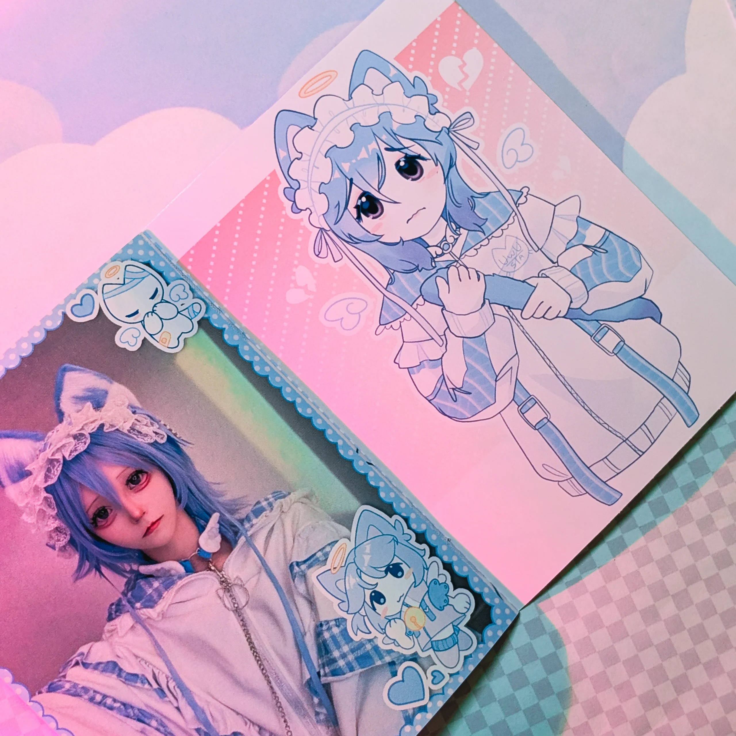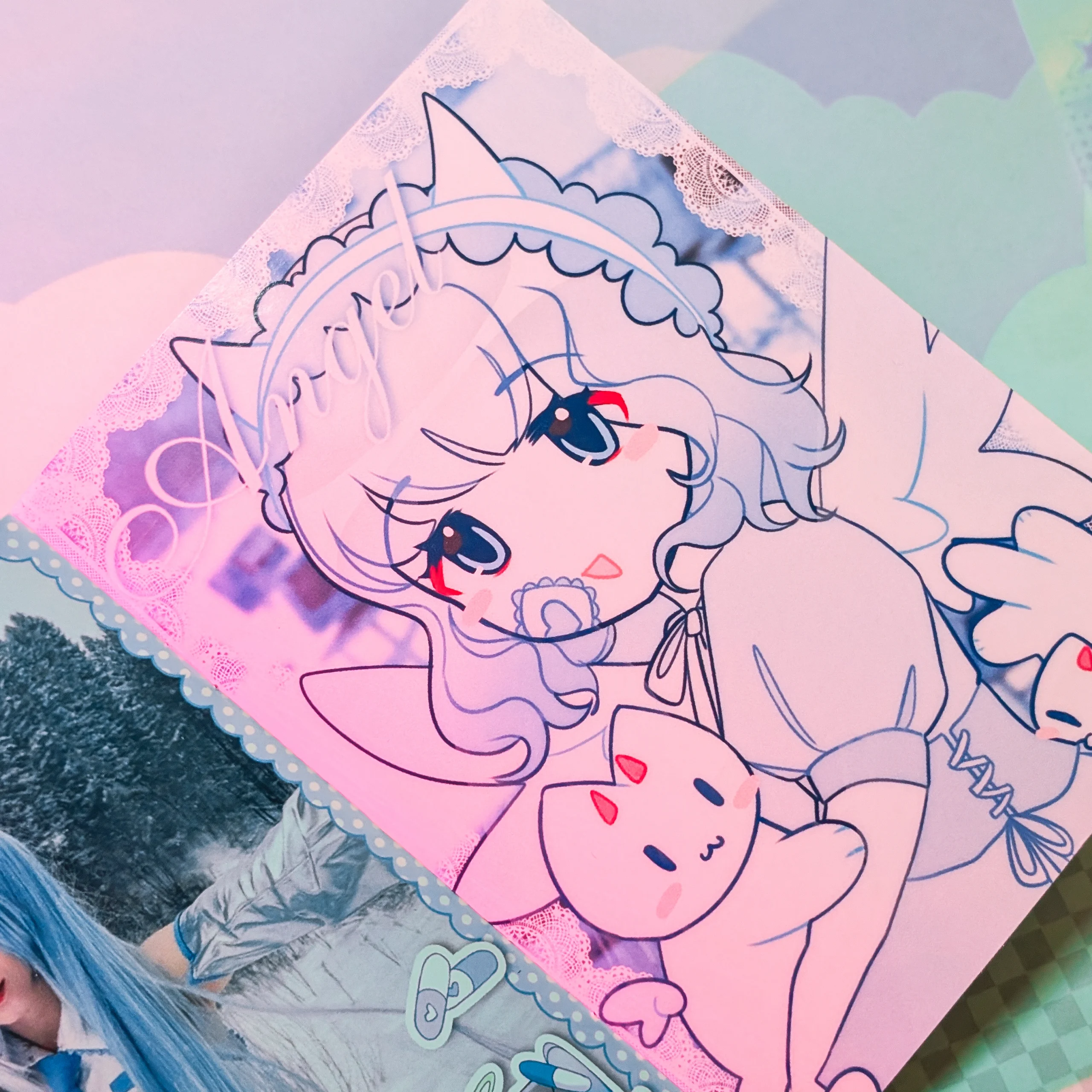 Мини зин созданный в коллабе с фьерсан, внутри тематические арты и фото образов, глянцевая бумага, пять страниц