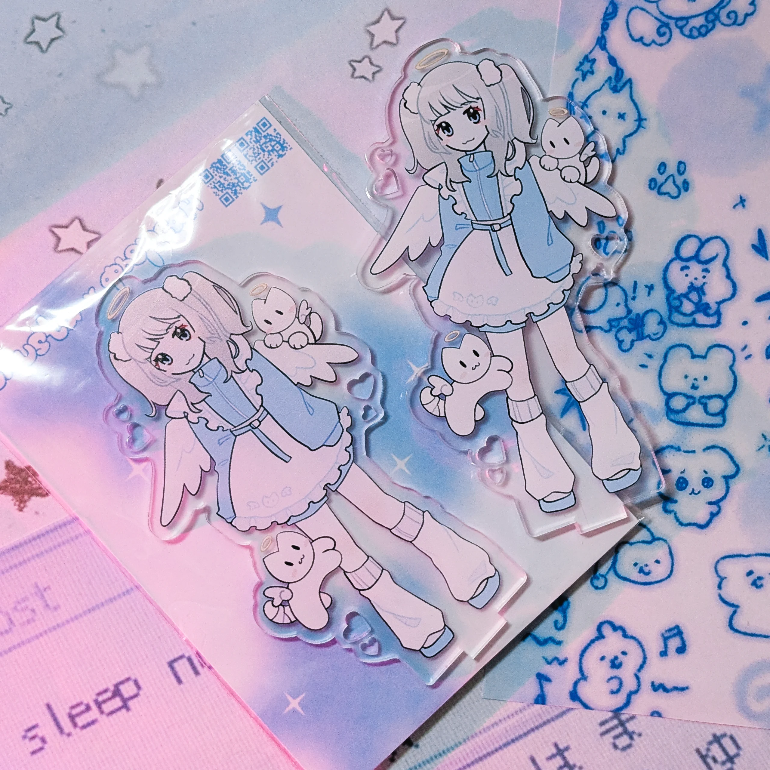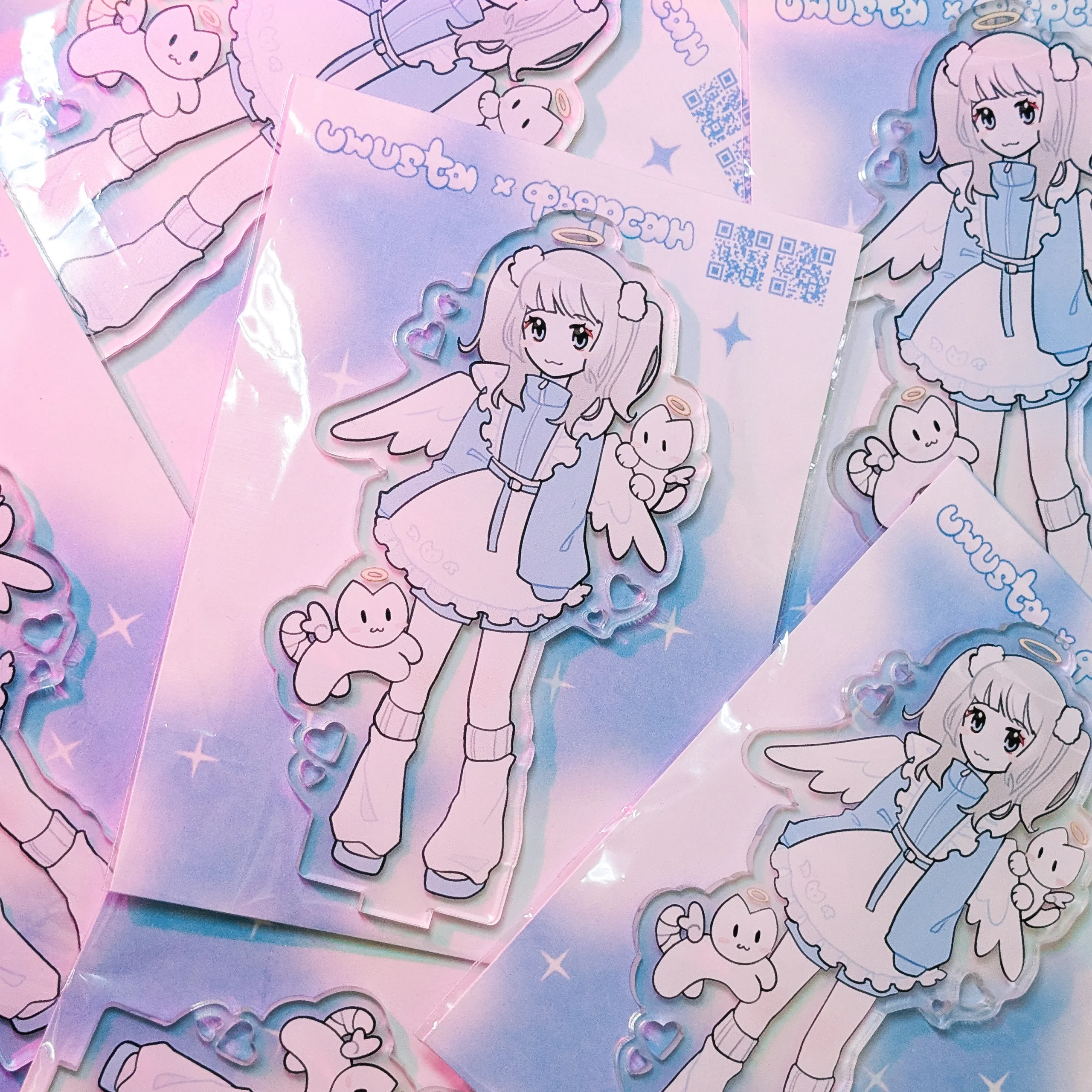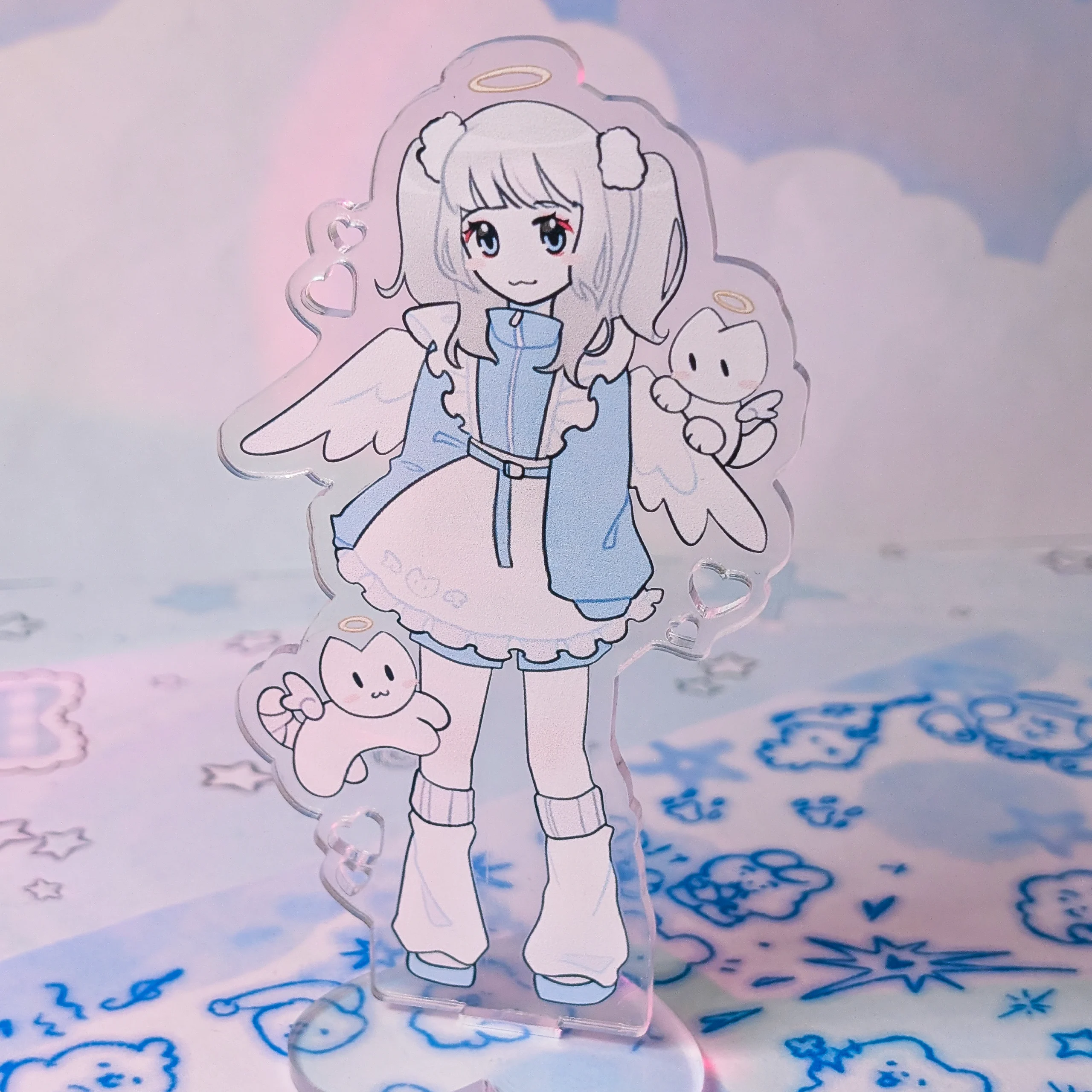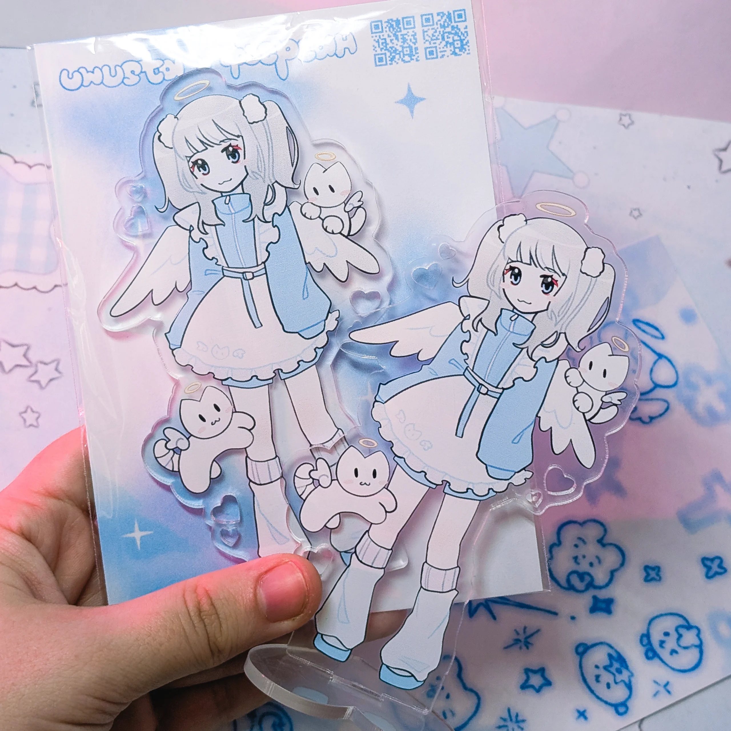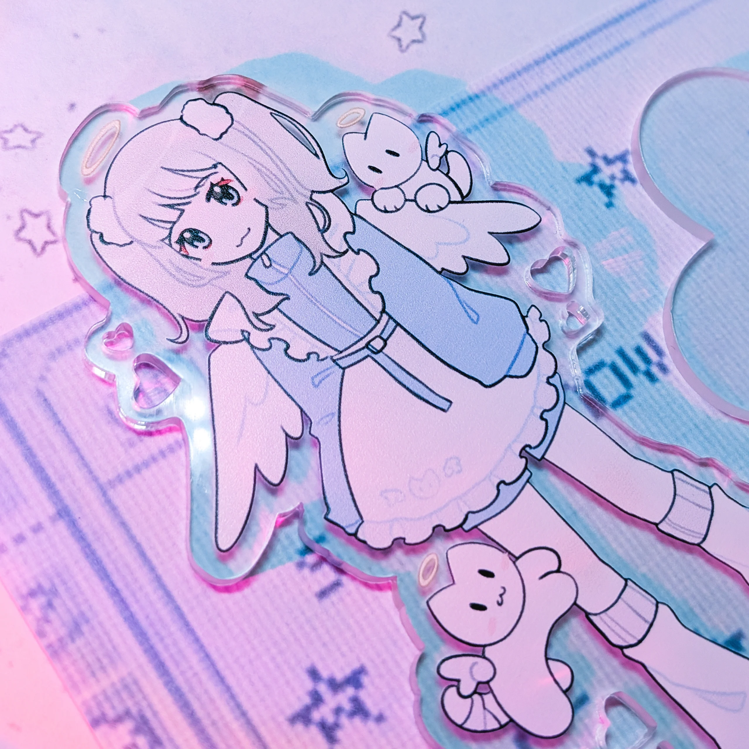 Акриловый стенд в коллабе с фьерсан, подставка в виде сердечка и вырезы в виде сердец на акриле