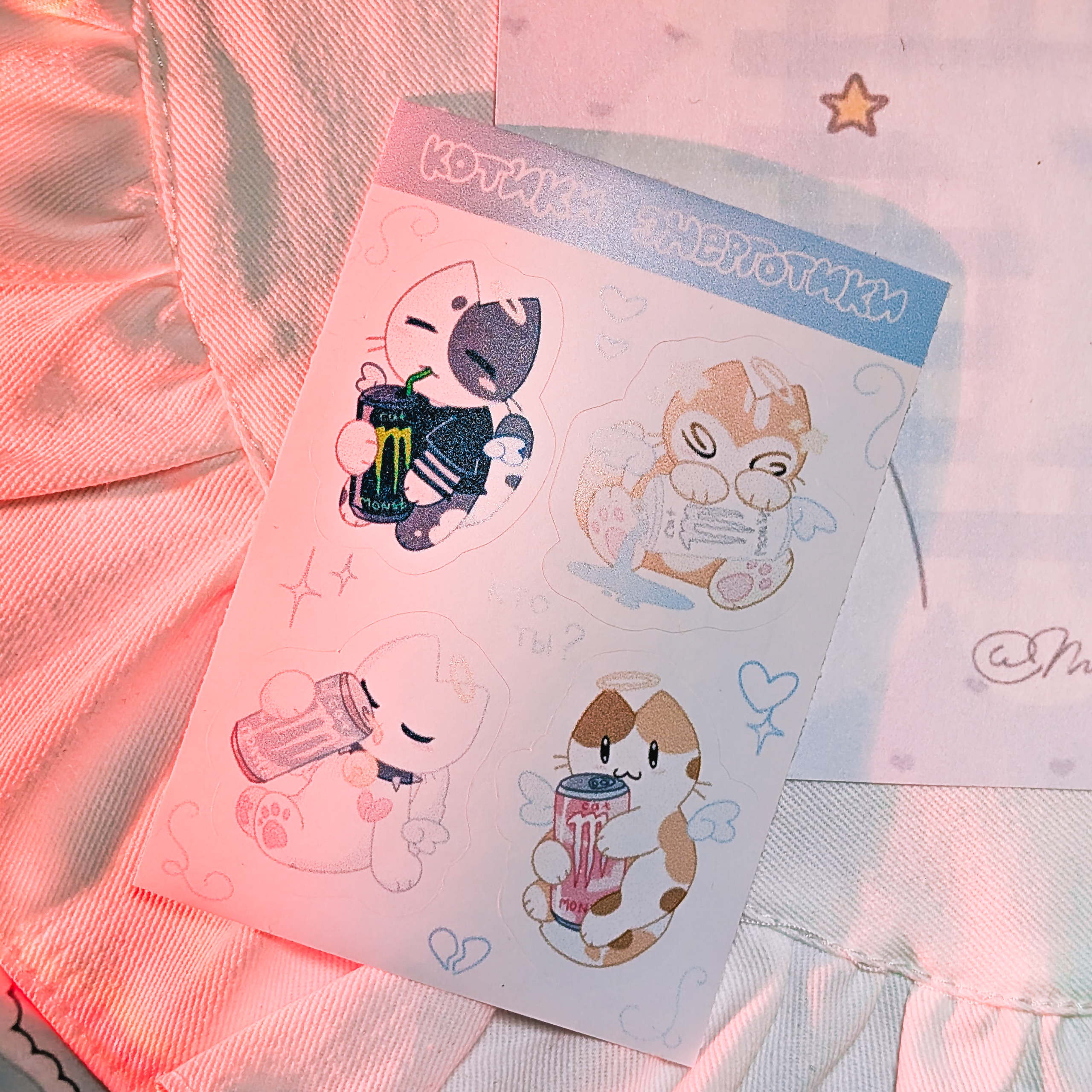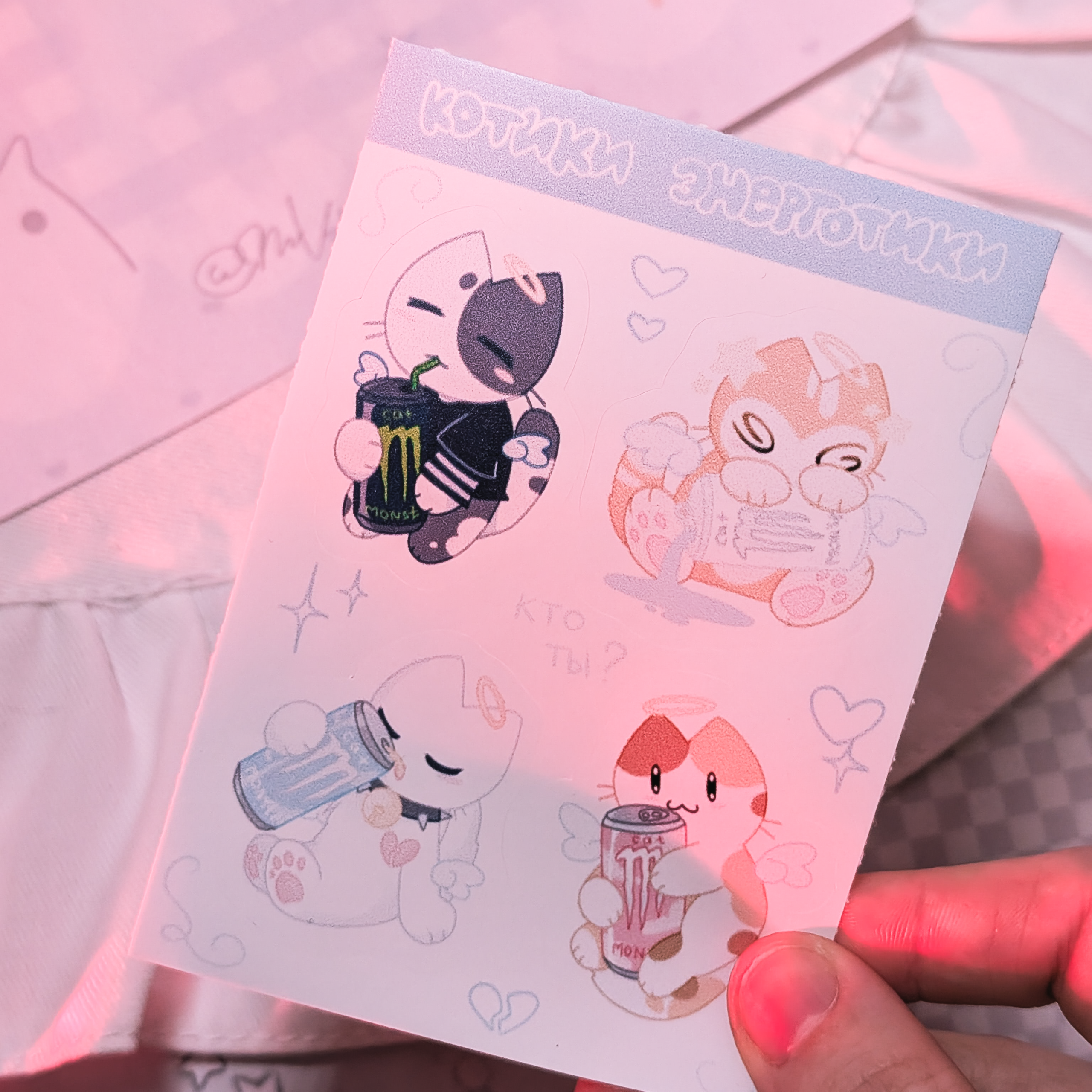 Стикерпак с вырезкой виниловый с котиками Энерготиками