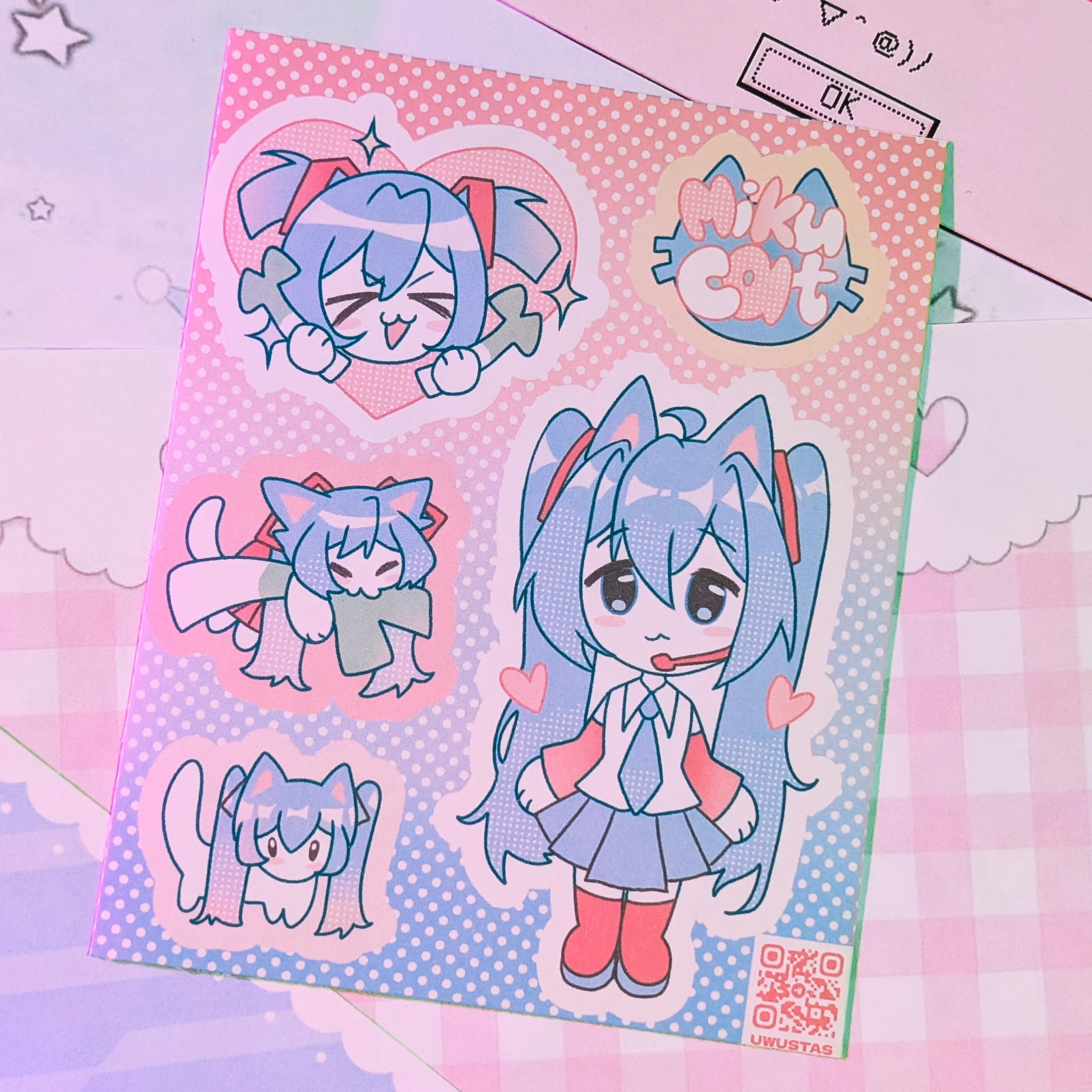 Стикерпак без резки с мику котиком